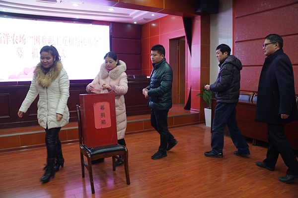 為建立健全扶貧幫困工作長效機制,弘揚團結(jié)友愛、互幫互助的傳統(tǒng)美德,1月2日,新洋農(nóng)場舉行2018年“困難職工互相幫扶基金”募捐儀式。場領(lǐng)導(dǎo)陳守軍、潘元海、戴學(xué)林、王煜明出席,機關(guān)全體工作人員參加了儀式。