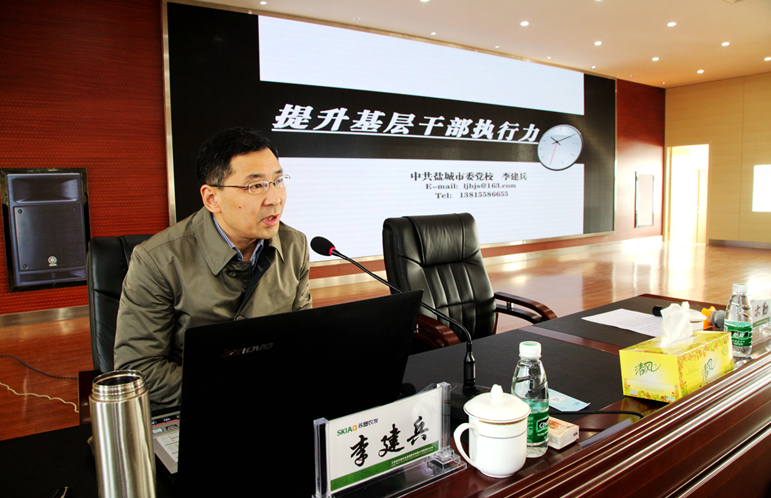 會議邀請了鹽城市委黨校黨委委員、教育長李建兵作《提升基層干部執(zhí)行力》的專題輔導(dǎo)。李教育長分別從樹立執(zhí)行意識、融入執(zhí)行團(tuán)隊(duì)、構(gòu)建執(zhí)行流程、規(guī)范執(zhí)行程序四個方面,系統(tǒng)闡述了如何提升基層干部執(zhí)行力和提升執(zhí)行力的重要性。