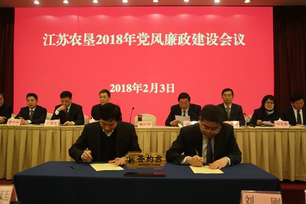 2月3日下午,集團公司在南京召開2018年黨風廉政建設會議,分析墾區黨風廉政建設形勢,部署2018年黨風廉政建設任務。集團公司黨委書記、董事長魏紅軍作了講話,并與直屬企業黨委負責人逐一簽訂黨風廉政建設責任狀,黨委副書記、總經理胡兆輝主持會議,黨委委員、紀委書記章朝陽傳達中紀委二次全會和省紀委三次全會精神。集團公司黨委班子成員姚準明、姜建友、劉克英、仲小兵、蘇志富、楊義林,以及周作義、陳建軍,工會主席佟曉廷、總經濟師劉剛,總經理助理孫鍵、季友兵出席會議。