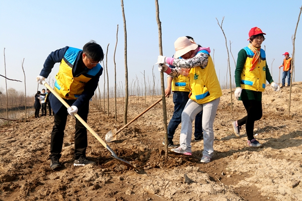 3月的新洋,春光旖旎,生機煥發。12日下午,150名志愿者分別集結新北生產區6大隊和7大隊防風林帶,僅40分鐘就植下重陽木和水杉共3000棵,為“綠色生態新洋”描繪出濃墨重彩的一筆。