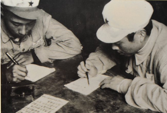 動(dòng)員令下來(lái)后,全師各指戰(zhàn)員紛紛訂計(jì)劃,下決心學(xué)習(xí)。有的學(xué)員在學(xué)拼音時(shí),怎么也拼不上,于是經(jīng)過(guò)輔導(dǎo)員的耐心幫助,他找到了竅門(mén):“前音短,后音重,兩音相碰猛一沖。”兩個(gè)鐘點(diǎn)內(nèi)就把拼音全學(xué)會(huì)了,禁不住高興的跳起來(lái)。