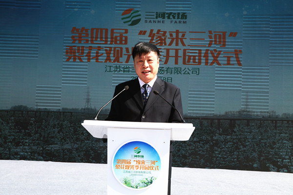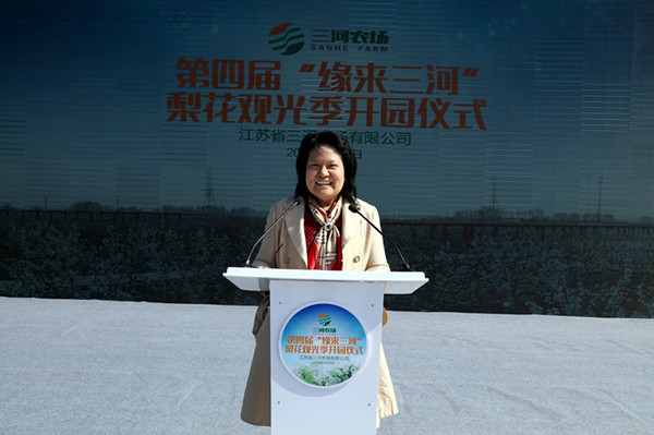 江蘇農墾集團公司黨委委員、總會計師劉克英代表農墾集團在開園儀式上講話,她說,三河,用一幅幅美麗的畫卷,展示了江蘇農墾的大地文化、綠色文化,展示了江蘇農墾的和諧與包容、開放與創新,展示了三河農場敢為人先、爭創一流的志氣!希望三河進一步發揚農墾精神,把握機遇,艱苦奮斗,勇于奉獻,開拓創新,將美麗三河真正打造成生態家園、旅游樂園,為地方經濟發展和職工居民增收作出新的貢獻。期待更多的朋友走進三河、了解三河、關注三河,享自然生態之美、品歷史文化之韻。