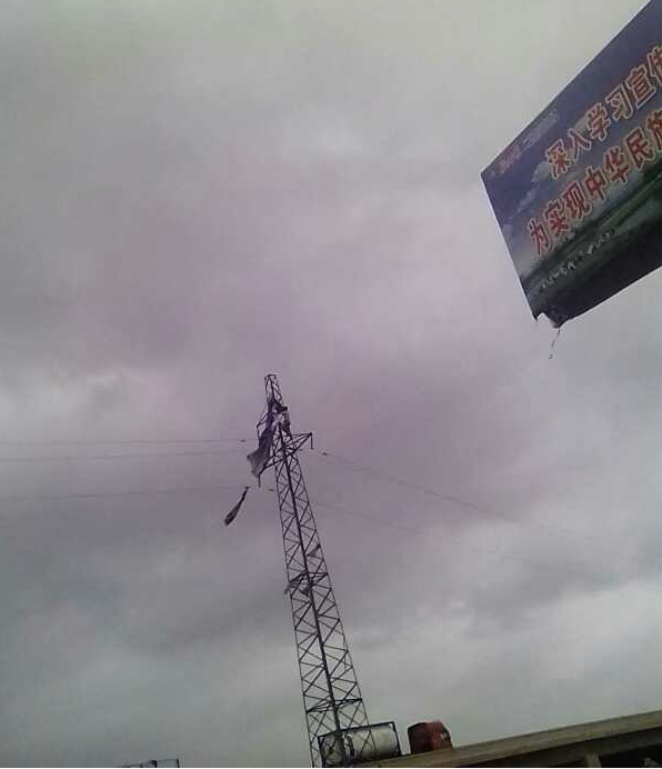 目標確定后,張榮生毫不猶豫地系上安全帶,也不管當時塔高風急的危險,頂著風雨一步一步艱難地向塔頂爬去。其他人員立即向公司領導和值班人員匯報故障出現(xiàn)的地點及清除情況。在供電公司,平時很輕松的登高作業(yè),今天卻在“溫比亞”風雨的侵襲下,每登一步都是很艱難,甚至眼睛都不能正常睜開。就是這樣,張榮生全然不顧,他在穩(wěn)住自己的同時,依次拉扯下廣告布,迅速排除了故障。