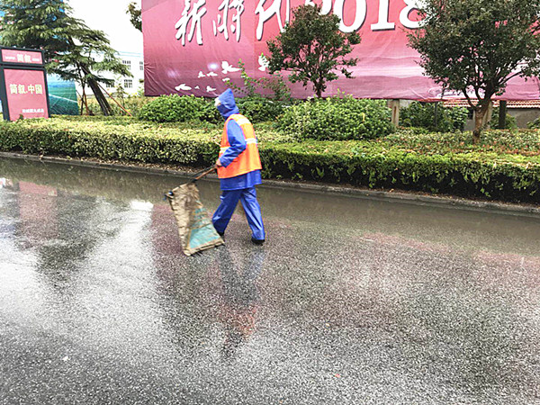 是日,盡管下暴雨,但新洋環衛工人們還是像往常一樣,早上六點多就上班了,他們身著雨衣雨褲,外面套著環衛工人工作服,在各自區域行走,雨水一直下,夾著大豐,吹落了樹上的葉子,與路上的雨水和在一起,給環衛工人清掃增加了難度,但環衛工人們不辭勞苦,十分認真地清掃干凈。到了下午,雨停了,路上的落葉變多了,但環衛工人們沒有絲毫抱怨,不厭其煩地再次清掃。