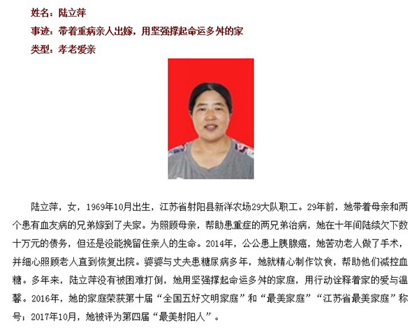 陸立萍當(dāng)選“鹽城好人”