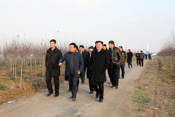 李朝欽一行先后考察了糧食風干倉、30大隊的麥田、海棠科技產業園、漁場。