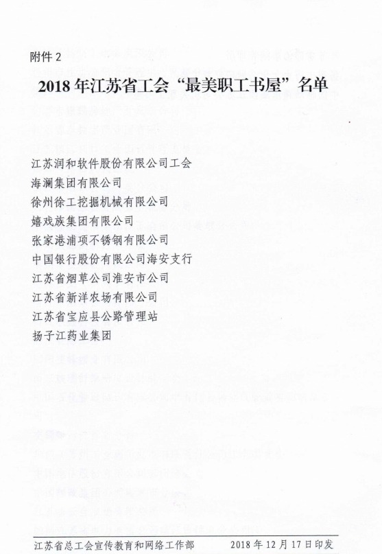 新洋榮獲江蘇省“最美職工書屋”稱號