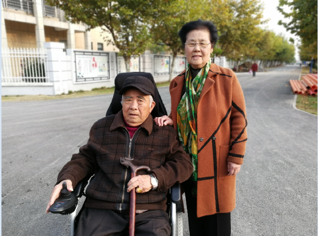 吳文英也已是年逾八旬的老人了,患腔梗(腦梗的一種)已有多年,可每天還堅持照顧老伴。如今,兩位老人的身體還算可以,生活自理,每天上午在家看電視,午睡后一起出門散步,劉可通坐在電動輪椅上,老伴跟在后面,到處走走看看。鄉鄰看到二老形影不離,彼此恩愛,都很羨慕他們,認為人生有個好伴侶是一輩子的幸福。圖為劉可通和吳文英老兩口在創業路上。