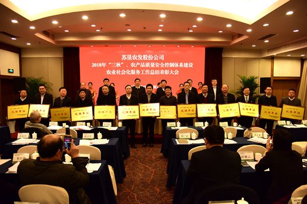 12月19日,蘇墾農發股份公司在南京隆重召開2018年“三秋”、農產品質量安全控制體系建設、農業社會化服務工作總結表彰大會。集團公司總經理、蘇墾農發股份公司董事長胡兆輝主持會議并講話。集團公司黨委委員、蘇墾農發股份公司總裁蘇志富作報告,并宣讀表彰決定。會議表彰了在2018年“三秋”工作、農產品質量安全控制體系建設及農業社會化服務工作中表現優異、成績突出的先進集體和先進個人。