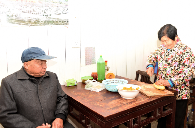 “一般燒飯做菜都是我來做,有時我做菜他嫌我做的不好吃的話,就自己炒上一盤或燒上一頓。”陳秀蘭在家邊切著菜邊聊著,“他歲數比我大,我要照顧看著他。”