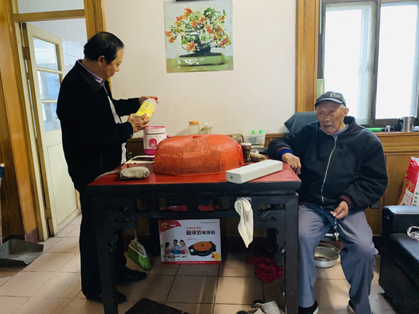 當天下午,志愿者們來到老人施友邦家中探望慰問,施友邦今年81歲,子女不在身邊,屬于獨居老人,志愿者首先查看了老人家中用電線路,并提醒老人注意用電安全,隨后朱玉兵又查看了老人桌上的食物,發現了過期的飲料,和老人講解了飲食的相關注意事項,通過與老人親切交談、噓寒問暖,了解了他的生活情況,最后為老人進行簡單的體檢,叮囑老人要注意保護身體。志愿者服務隊了解情況后及時進行登記并留下了老人兒子的手機號碼,把他列入服務中心重點關愛對象,當服務中心志愿者離開老人家的時候,老人連聲表示感謝。