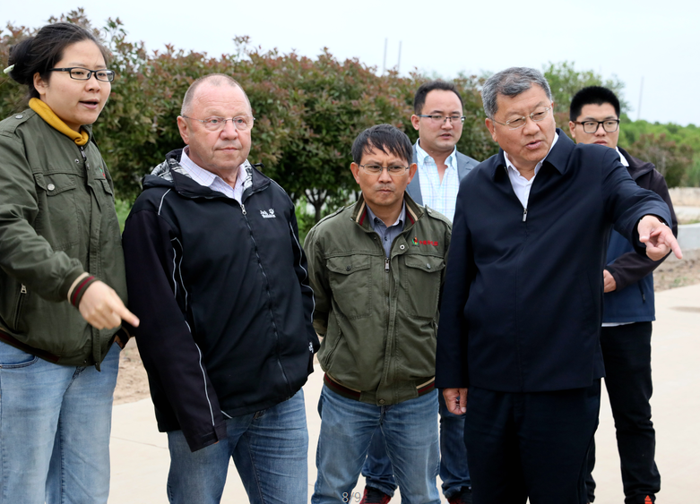 5月17日,李衛(wèi)東對海恩哈德•柔斯伯格的到來表示歡迎。在觀看了黃海農(nóng)場公司形象片、中德示范園成果展示片后,李衛(wèi)東、何彥平等陪同海恩哈德一行到“田間日”活動現(xiàn)場和田間實地查看準(zhǔn)備現(xiàn)場。期間,李衛(wèi)東詳細介紹了黃海公司與中德示范園情況,并就田間日的籌備工作,尤其是活動期間的中德文化交流展示進行具體詳實的磋商,表示將全力以赴、精心組織、周密安排,在"精、細、實”上下工夫,確保“田間日”活動成功舉辦。