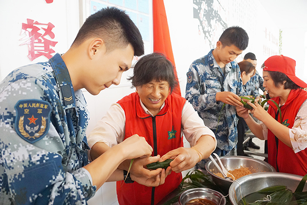 活動現(xiàn)場,歡聲笑語,其樂融融。官兵們和志愿者簇擁在一起,共享包粽子的喜悅。志愿者手把手地教戰(zhàn)士們包粽子,在耐心傳授技能的同時,積極與官兵們拉起家常,詢問他們的工作情況,鼓勵他們好好學(xué)習(xí)和工作。在志愿者的手把手教導(dǎo)下,官兵們從對包粽子一竅不通到熟練操作,包出一個個可愛的粽子,活動大廳內(nèi)粽葉飄香,洋溢著濃濃的軍民魚水情。