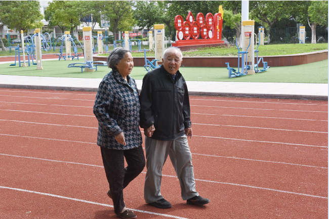 每天下午三四點鐘,我們在淮海職工休閑體育運動廣場上,經(jīng)常可以看到一個80多歲的老人攙扶著妻子在廣場上散步,他們攙扶著有說有笑散步時的鏡頭,讓路過的人覺得他們好是恩愛。
