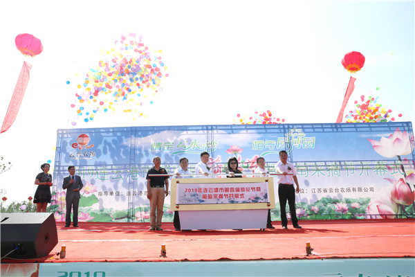 青山毓黛迎賓客,綠水含情荷飄香。又到了荷花盛開、荷香四溢的美好時節(jié),7月20日上午,由連云港市文化廣電和旅游局、連云港高新技術(shù)產(chǎn)業(yè)開發(fā)區(qū)指導(dǎo),江蘇省云臺農(nóng)場有限公司主辦的“2019連云港市第四屆荷花節(jié)暨葡萄采摘節(jié)”在云臺農(nóng)場“云水灣”濕地公園盛大開幕。連云港市副市長陳書軍,省農(nóng)墾集團黨委委員、總會計師劉克英,高新區(qū)黨工委書記陳佑龍等市、區(qū)相關(guān)單位部門,省農(nóng)墾系統(tǒng)部分兄弟單位、陜西省農(nóng)墾大荔農(nóng)場公司等領(lǐng)導(dǎo),農(nóng)場公司黨委書記、董事長、總經(jīng)理劉衛(wèi)華,黨委副書記宋光鋒、副總經(jīng)理黃祖兵等場領(lǐng)導(dǎo)班子成員及近萬名游客參加了開幕式。