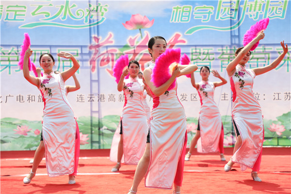 荷之形,亭亭玉立、搖曳多姿,代表著生態(tài)自然、秀外慧中的云臺形象。緊接著荷文化文藝匯演在精彩的開場鼓《盛世鼓舞》節(jié)目后正式拉開帷幕。本次荷花節(jié)的宣傳亮點是開通了連云港手機臺全程直播,吸引了3萬多名游客在網(wǎng)上收看荷花節(jié)直播盛況。開幕式還特別邀請了連云港市廣播電視臺著名主持人李華參與主持,音樂人王從鍵和交通廣播主持人小海分別送上了動聽的歌曲。接下來,大家一起欣賞了淮海戲折子戲《回娘家》、非遺項目海州五大宮調(diào)《一輪明月》、武術(shù)表演《臥虎藏龍》、農(nóng)場公司舞蹈《花樣年華》等節(jié)目,贏得了現(xiàn)場嘉賓及游客的陣陣掌聲。演出現(xiàn)場還穿插了紅包雨、幸運游客抽獎等互動環(huán)節(jié),吸引了眾多游客熱情參與,現(xiàn)場氛圍十分活躍。