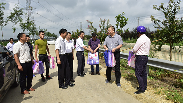 姚海洪一行在白馬湖農(nóng)場(chǎng)有限公司黨委書記姚春華、工會(huì)主席韓躍武以及相關(guān)單位負(fù)責(zé)同志的陪同下,特意趕到林業(yè)管理站近期正在抓緊管理維護(hù)的一處綠化工段,走訪了正在忙于為花卉苗木剪修整理的護(hù)林職工,親切地詢問(wèn)了他們的工作情況和身體感受,關(guān)心地叮囑大家要注意合理安排作業(yè)時(shí)間、注意注重采取好各項(xiàng)防暑降溫的有效措施,保證生產(chǎn)和身心健康兩不誤。同時(shí),他還依次為在現(xiàn)場(chǎng)作業(yè)的每一位工作人員一一發(fā)放了精心為大家準(zhǔn)備的“清涼禮包”,在這炎熱的季節(jié)里為大家送來(lái)了一股股清涼。