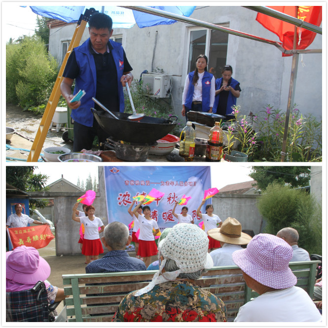 活動(dòng)中,志愿者們精心組織了文藝演出、共進(jìn)團(tuán)圓飯、送月餅等活動(dòng)內(nèi)容。一走進(jìn)敬養(yǎng)院,志愿者們就忙開(kāi)了,他們分工合作。一組搞衛(wèi)生,一組演出,一組做飯。文藝演出中,準(zhǔn)備了舞蹈《蓮湘舞》《七個(gè)隆咚響》《我們的中國(guó)夢(mèng)》《緣份讓我們?cè)谝黄稹罚彀鍟?shū)《天安門(mén)廣場(chǎng)看升旗》,歌伴舞《紅梅贊》,獨(dú)唱《把最美的歌唱給媽媽》等節(jié)目。團(tuán)圓飯制作,志愿者們準(zhǔn)備了紅燒雞腿、肉圓燉蘿卜、油燜茄子、清煸豆角、西紅柿蛋湯等菜。中秋佳節(jié),怎么少得了月餅?志愿者們又為每位老人送上了月餅、牛奶、面巾紙等禮物。