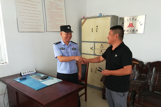 于是鄭光輝立即安排值班民警在警務(wù)系統(tǒng)平臺(tái)查詢,經(jīng)過搜索立刻倪先生的身份信息映入眼簾。于是鄭光輝撥通了失主的聯(lián)系電話后,通知失主前來認(rèn)領(lǐng)。