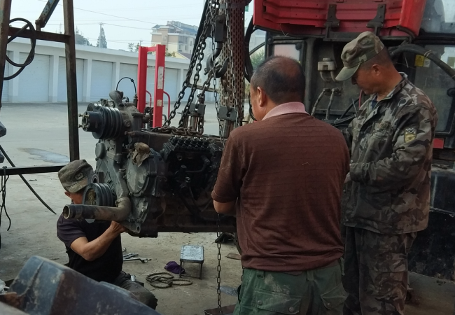 今年“三秋”開(kāi)始以來(lái),為保障農(nóng)機(jī)更好地服務(wù)農(nóng)業(yè),該農(nóng)機(jī)修理所以提供配件和搶抓修理為主業(yè),既上門或到田間地頭進(jìn)行搶修,又接受廣大農(nóng)機(jī)戶上門修理農(nóng)機(jī)業(yè)務(wù),同時(shí)也無(wú)償?shù)貫閺V大農(nóng)機(jī)戶提供技術(shù)咨詢、電話醫(yī)生等服務(wù),以站在農(nóng)機(jī)戶的角度上思考問(wèn)題,盡可能地縮短農(nóng)機(jī)手等待農(nóng)機(jī)配件或是修理的時(shí)間,千方百計(jì)并加班加點(diǎn)地為廣大農(nóng)機(jī)戶提供方便。為節(jié)約時(shí)間,他們的中晚餐全交由快餐店來(lái)經(jīng)營(yíng),夜晚更是加班加點(diǎn)地?fù)]汗如雨搶趕進(jìn)度。他們正是以誠(chéng)信經(jīng)營(yíng)的理念和優(yōu)質(zhì)的服務(wù)質(zhì)量,受到了農(nóng)場(chǎng)有限公司及周邊廣大農(nóng)機(jī)戶的支持和歡迎。圖為李貴等四兄弟在搶修農(nóng)機(jī)時(shí)的鏡頭。