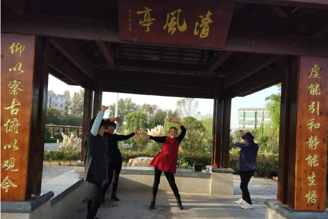 10月29日一早,陽光明媚,晴空萬里。走在淮海公園內(nèi)那如詩如畫的綠色氧吧里,邊晨起健身,邊欣賞美景。在公園最高處有悠揚的音樂聲傳來,循聲望去,只見4位退休的職工居民,正隨著音樂的節(jié)拍在抖著腰肌。雖然幾個人有的叫不出名字,但看她們的神態(tài)和身手,明顯感受到多年來健身帶來的光鮮。