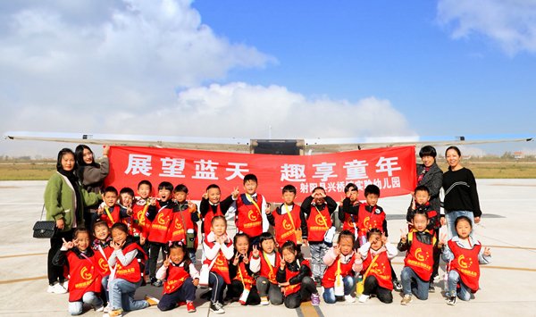 清晨,每個(gè)孩子帶著家中準(zhǔn)備好的太陽帽、水杯、濕紙巾、小零食興高采烈地,在老師們的帶領(lǐng)下登上去往射陽縣通用機(jī)場的大巴車,孩子們一路上歡呼雀躍、兒歌飄揚(yáng),不知不覺中到達(dá)了目的地。