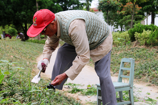 糜老參加公益除草活動