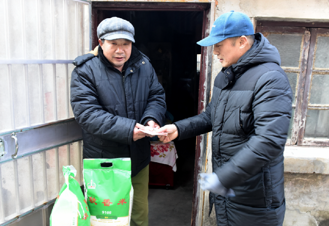 “嚴建明,你好!我給你帶來了兩袋米和500元錢,這是我代表陸同聯來慰問你的心意,務必請你收下!”1月8日下午,淮海農場社區城西居委會主任臧成龍攜帶4袋大米和1000元現金,先后來到城西困難居民李懷兵和嚴建明的家中,應邀對這兩戶貧困戶開展節前獻愛心送溫暖活動,為他們送上節日的祝福和美好的祝愿。