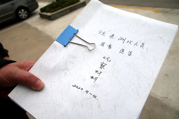 在社區,厚厚的資料冊詳細地記錄了每一戶居民的基本情況。自春節前開始,社區所有工作人員和100多名網格員劃分網格,逐一走訪了轄區內所有居民,摸排他們疫情期間的動向和身體情況。