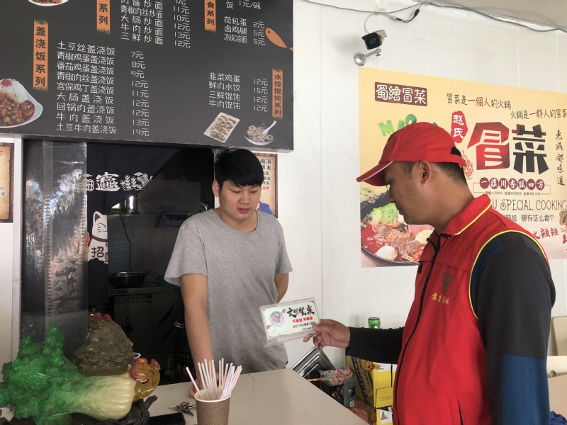 活動中,志愿者們分為5個小組,分片對場域內餐飲行業門店進行“文明餐桌”工作宣傳,積極宣傳餐桌文明知識、倡導餐桌文明行為的良好風尚,提醒到店就餐的顧客就餐時不喧嘩、不打鬧,自覺養成珍惜糧食,不剩飯、不剩菜的良好習慣,倡導人們文明、安全、節儉用餐,追求科學、理性、健康的生活方式。