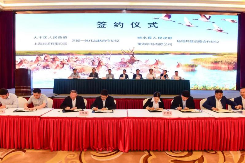 省農(nóng)墾集團(tuán)黨委書記、董事長(zhǎng)魏紅軍,省沿海開發(fā)集團(tuán)黨委書記、董事長(zhǎng)鄧東升,上海光明食品集團(tuán)黨委委員、副總裁許如慶,省司法廳黨委委員、省戒毒管理局黨委書記、局長(zhǎng)高如軍,省農(nóng)業(yè)農(nóng)村廳二級(jí)巡視員俞衛(wèi)東等農(nóng)場(chǎng)上級(jí)主管單位負(fù)責(zé)同志和滬屬、省屬農(nóng)場(chǎng)代表應(yīng)邀出席并講話,與會(huì)人員高度評(píng)價(jià)我市的創(chuàng)新舉措,認(rèn)為這必將打造農(nóng)業(yè)農(nóng)村高質(zhì)量發(fā)展新樣板。會(huì)議還現(xiàn)場(chǎng)簽訂了一批地方和農(nóng)場(chǎng)項(xiàng)目合作協(xié)議。