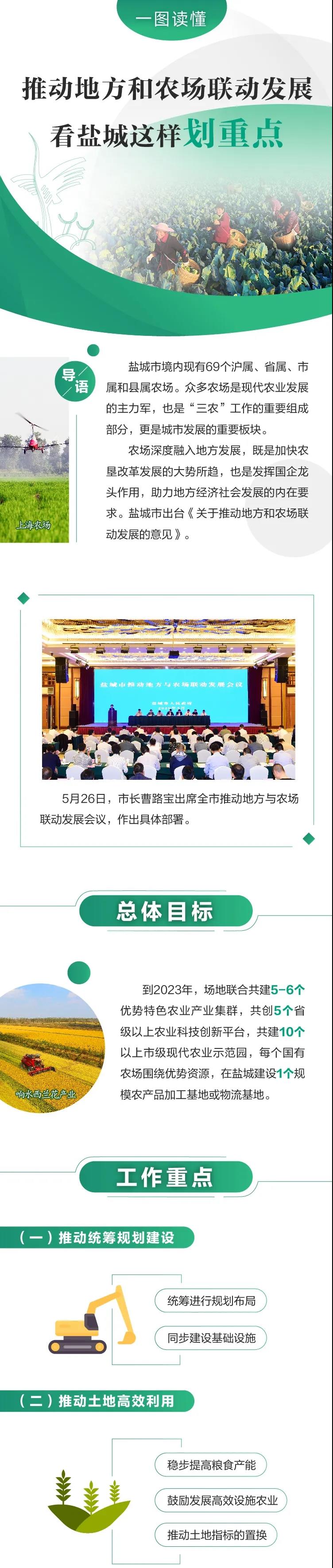 鹽城是長(zhǎng)三角27個(gè)中心區(qū)城市之一,空間大、生態(tài)好、農(nóng)業(yè)強(qiáng),境內(nèi)現(xiàn)有滬屬、省屬、市屬和縣屬農(nóng)場(chǎng)共69個(gè)。市委市政府高度重視“三農(nóng)”工作,研究出臺(tái)《關(guān)于推動(dòng)地方與農(nóng)場(chǎng)聯(lián)動(dòng)發(fā)展的意見》,加強(qiáng)頂層設(shè)計(jì),推動(dòng)優(yōu)勢(shì)疊加,促進(jìn)地方與農(nóng)場(chǎng)聯(lián)動(dòng)發(fā)展,實(shí)現(xiàn)由農(nóng)業(yè)大市向農(nóng)業(yè)強(qiáng)市轉(zhuǎn)變。