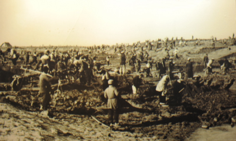 彎彎扭扭的一條舊洋河河邊,有一條數(shù)十年的老大路,北通六垛,南通三垛。在第一戰(zhàn)役中,曾被某連墊高過三百六十公尺長,為的能便于拖拉機(jī)行車?,F(xiàn)在,專供拖拉機(jī)走的路已經(jīng)修好。這個三百六十公尺長的路,兩旁還各有十多公尺寬的水溝,仍然摞在那塊。而拖拉機(jī)冬墾就要開始,團(tuán)黨委的布置;明年一萬二千畝植棉地區(qū),今冬一定墾好,因此急需將這墊高的大路挖平填溝,使拖拉機(jī)好迅速的進(jìn)行耕作。十二團(tuán)炮兵連在十一月二十六日,接受了這一緊急任務(wù)。