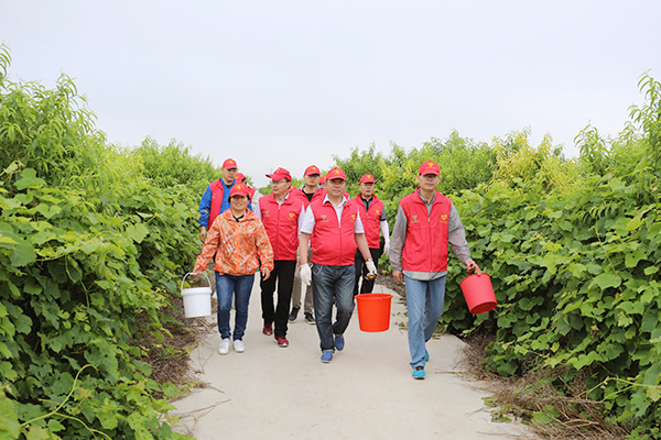 6月11日,臨海農(nóng)場百果園里熱鬧非凡,由農(nóng)場公司機(jī)關(guān)第一黨支部全體黨員、青年志愿者組成的采摘團(tuán),正在幫助綠農(nóng)園公司采摘油桃。