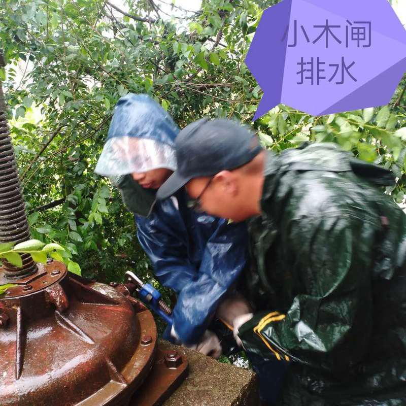 農水中心主任何成就帶領農機總站一行7人臨危受命冒雨前往小木閘。小木閘是農場剛建成時建立的河閘,肩負新洋農場的抗洪排澇任務幾十年,在農場新建成電動河閘后處于退休狀態,原本的電機已經拆除,升降閘門的螺桿也已生銹。如果不是這次雨來的太猛,小木閘本可以如一個退休的老人一樣靜靜地看著新洋蓬勃發展。