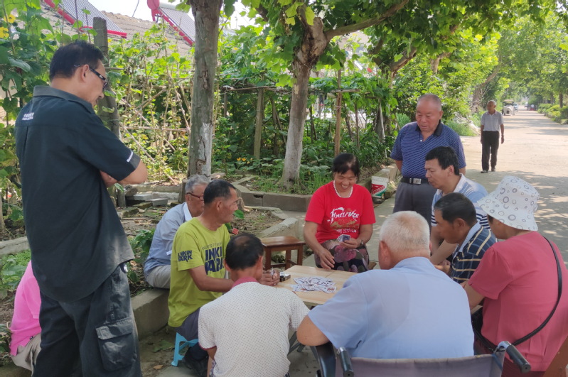 據(jù)悉,生活在淮海的退休職工就有近3000人,他們在退休前在各個崗位上打拼,為農(nóng)場的經(jīng)濟社會建設作出了重大的貢獻。如今他們退休了,也該他們到了享受的年紀了,于是這些老鄰居老朋友們,在陽光下的樹蔭中,或獨處著看書報、瀏覽手機上的新聞趣事;或夫妻倆及兒女們談論著家事;或三五一群、四五一堆聚在一起聊天、打牌、下棋……怡然自得心情舒暢地享受著夏日清涼的蔭涼,一起享受著午前午后的休閑時光。有的老年人雖然不會玩,但他們喜歡湊熱鬧,在交談中度過了享受著的一天。