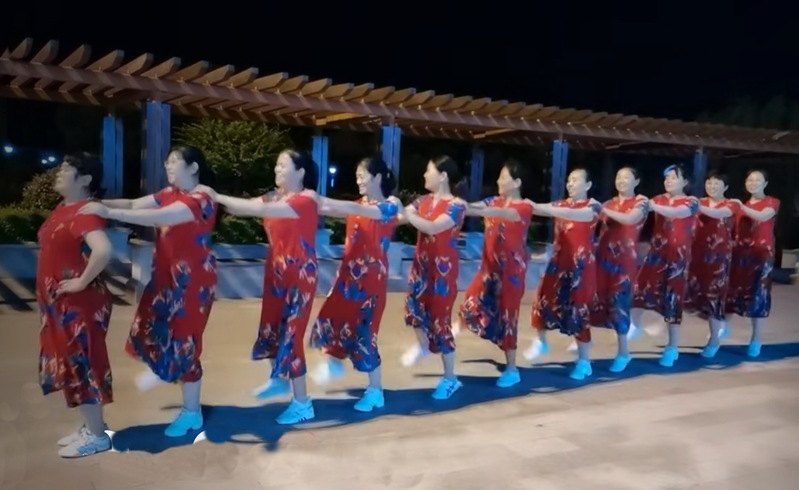 無論是在淮海公園前的夜間長廊廣場上,還是在農(nóng)場職工文化活動中心的舞蹈室內(nèi),為了展示她們舞蹈隊的風(fēng)采,她們通過精心編排舞蹈,把生活中的喜悅、家庭的和諧、社區(qū)的溫暖,紛紛借助唯美舞蹈的形式展示出來。為了讓舞蹈達(dá)到整齊劃一,讓健康時尚的健身操表演更具活力,舞蹈隊員們時而身著鮮艷的服裝,在行進(jìn)的舞步中變幻造型;時而紅裝素裹,亭亭玉立在鏡面似的舞蹈室之中;時而擺弄著定格似的舞姿,宛若一幅靜止了似的風(fēng)景畫兒,讓現(xiàn)場的觀眾看了甚是喜愛。