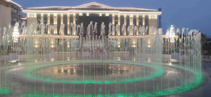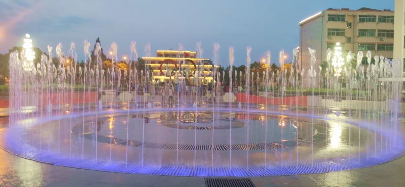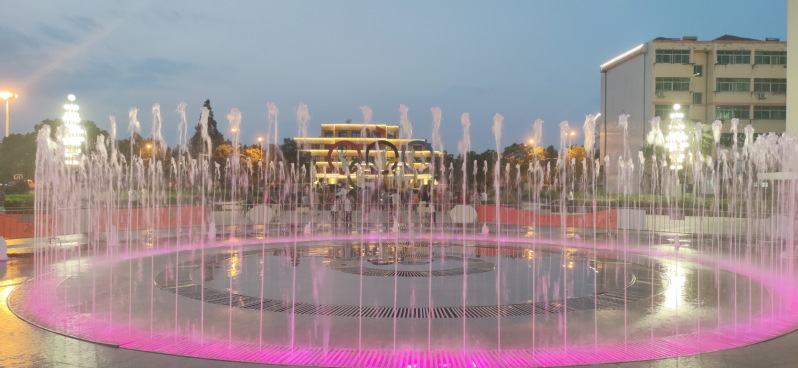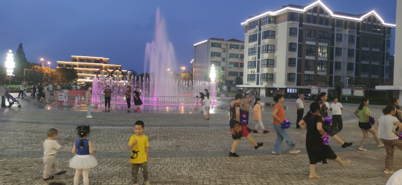 在淮海農場文化廣場中心區(qū)域的噴泉位上,每天傍晚時分,這里的音樂噴泉總是給農場的夜色增添了變幻著的迷人風景,能變換許多種造型的大型音樂噴泉,時而一柱沖天、時而萬馬奔騰、時而此起彼伏、時而柔性十足,并且音樂噴泉在周邊樓宇的燈光和職工居民舞蹈動作的映襯下更加唯美、更有動感、也更有了靈氣。每到夜晚,噴泉在音樂聲中翩翩起舞,色彩斑斕。受此噴泉吸引,農場職工居民喜歡在音樂噴泉旁載歌載舞,喜歡圍著音樂噴泉拍照留念。而這里更成為了孩子們追逐的天堂,通過近距離地欣賞音樂噴泉的美景。不同的需求、不同的美景、共同的快樂,讓大家在音樂噴泉的風姿中,度過一個又一個快樂的夜晚。