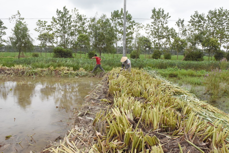 70多歲的高殿新老漢正用斧頭熟練地對移栽后的再力花根莖進行打理,如今在花卉田間打工勞作已然是他們夫婦生活中不可或缺的一部分,在勞動中品嘗著收獲的快樂。