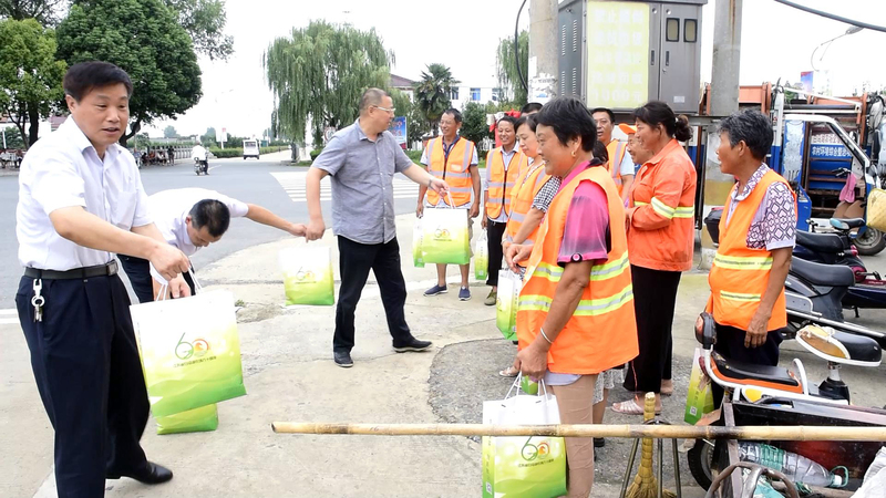 8月10日下午,集團(tuán)公司工會(huì)副主席姚海洪一行到白馬湖農(nóng)場公司開展送清涼活動(dòng),向20名一直奮戰(zhàn)在高溫下的環(huán)衛(wèi)或垃圾轉(zhuǎn)運(yùn)工人送上了工會(huì)大家庭的關(guān)愛和溫馨。