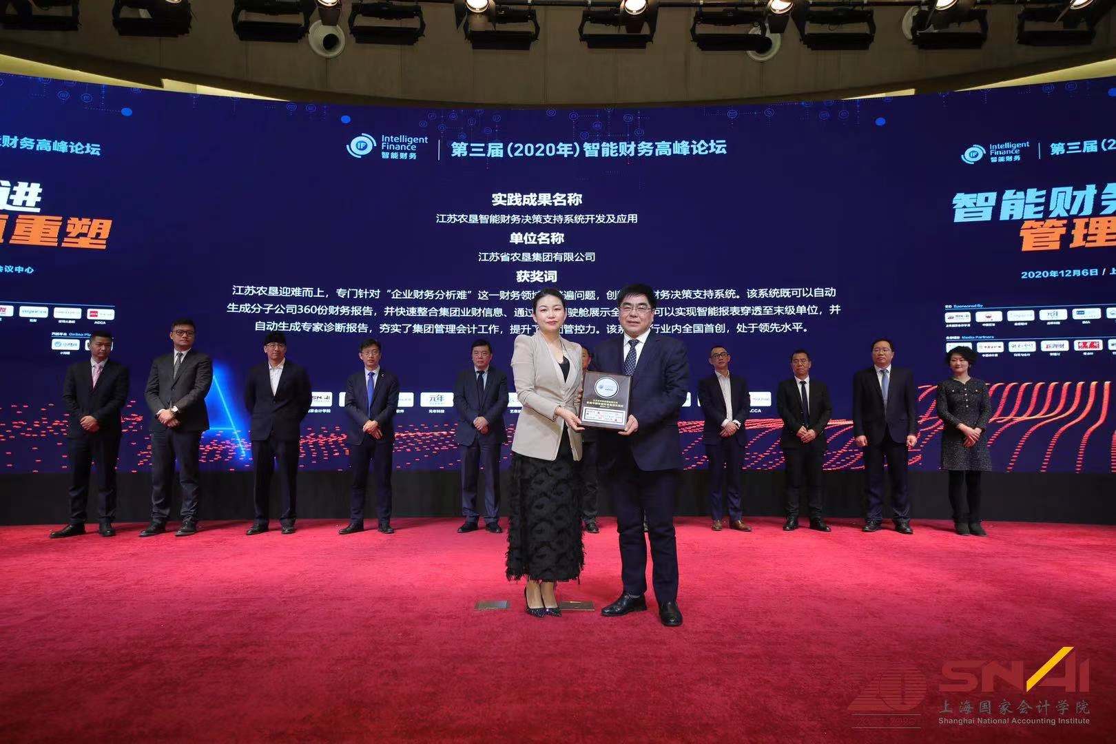 峰會(huì)期間頒發(fā)了首屆“中國(guó)智能財(cái)務(wù)最佳實(shí)踐”大獎(jiǎng),江蘇農(nóng)墾與中國(guó)石油、國(guó)網(wǎng)浙江電力、中國(guó)鐵搭、中科大一附院、雅居樂、云南煙草、南粵交通、蒙牛和中興新云等十家知名企業(yè)獲此獎(jiǎng)項(xiàng)。集團(tuán)公司總經(jīng)濟(jì)師楊炳生應(yīng)邀參加峰會(huì)并領(lǐng)獎(jiǎng)。該獎(jiǎng)項(xiàng)由財(cái)政部直屬的上海國(guó)家會(huì)計(jì)學(xué)院牽頭,與英國(guó)特許會(huì)計(jì)師公會(huì)(ACCA)、美國(guó)管理會(huì)計(jì)師協(xié)會(huì)(IMA)和國(guó)內(nèi)外智能財(cái)務(wù)領(lǐng)域頂尖研發(fā)機(jī)構(gòu)共同主辦,中國(guó)會(huì)計(jì)視野,中國(guó)會(huì)計(jì)報(bào),財(cái)務(wù)與會(huì)計(jì),新理財(cái),新會(huì)計(jì),管理會(huì)計(jì)研究,財(cái)會(huì)通訊和會(huì)計(jì)之友等國(guó)內(nèi)權(quán)威學(xué)刊提供媒體支持,37家國(guó)內(nèi)知名企業(yè)智能財(cái)務(wù)應(yīng)用項(xiàng)目共同參與角逐,評(píng)選分為資格審核、線下初評(píng)、網(wǎng)絡(luò)投票和競(jìng)獎(jiǎng)答辯等四個(gè)環(huán)節(jié),代表中國(guó)智能財(cái)務(wù)領(lǐng)域最高水平。