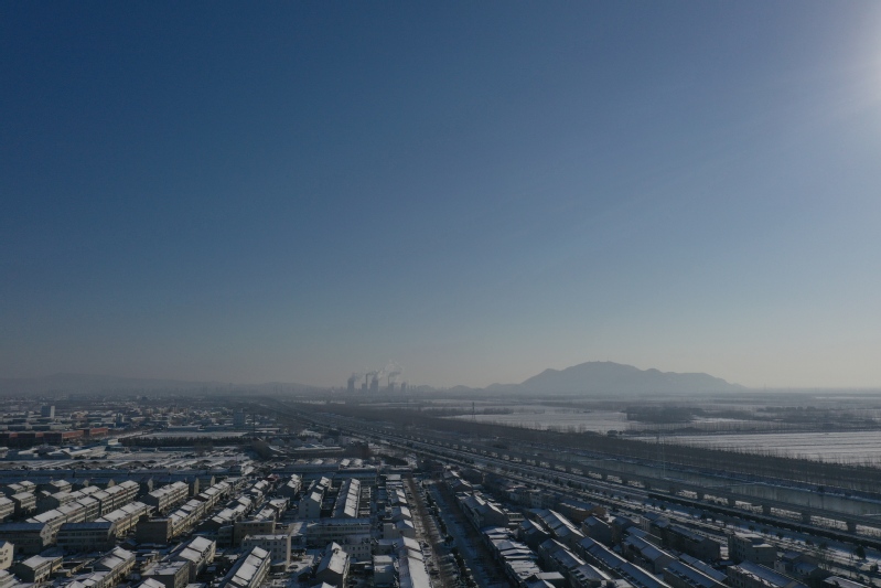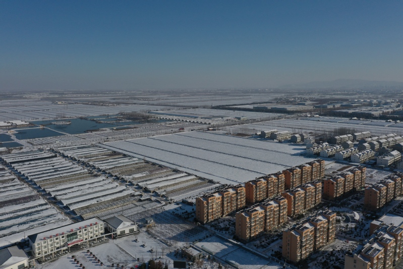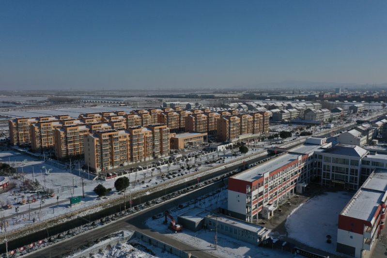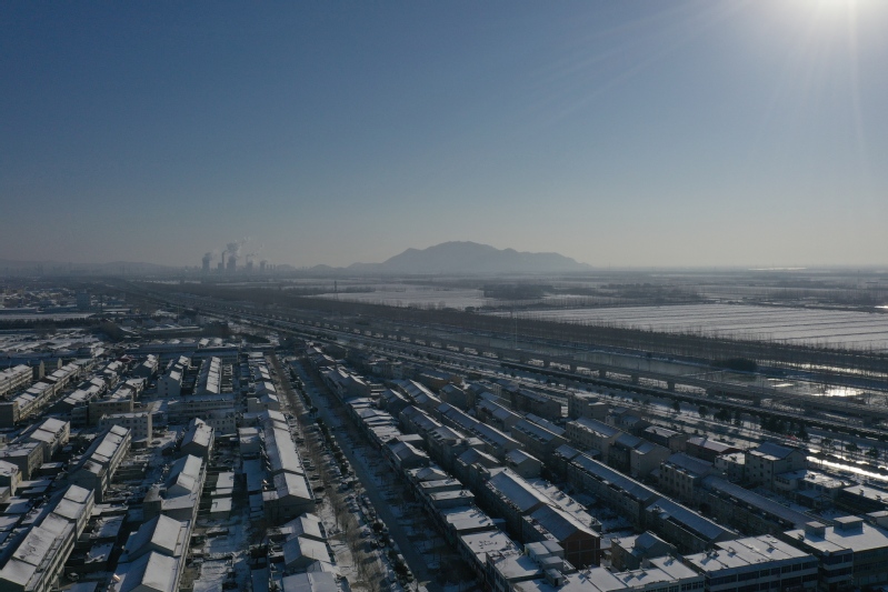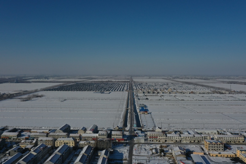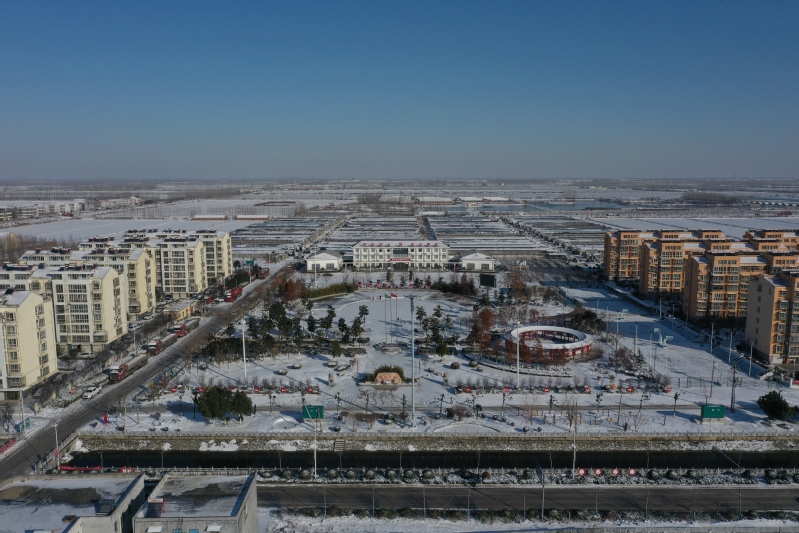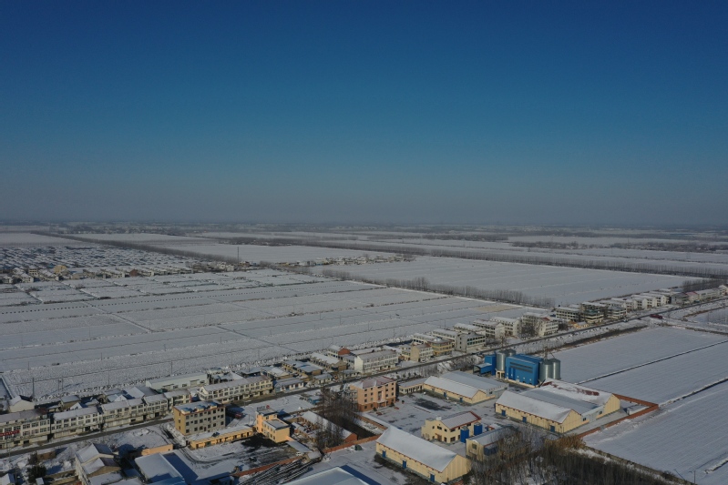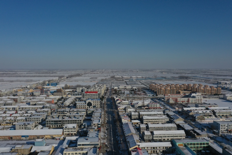 雪后初晴,利用無人機航拍記錄這一美麗的場景。只見崗埠農場小城鎮大雪過后一片白色的景象,到處是白雪皚皚,與藍天形成了強烈的對比,構成了一幅幅生動的藍天白雪圖。