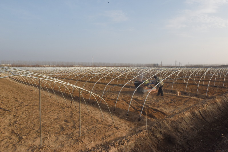 1月20日,筆者在淮海農(nóng)場五分場社區(qū)3000多畝西瓜大棚種植基地里看到,眾多的農(nóng)場職工居民和周邊農(nóng)村的群眾,散落在西瓜種植基地內(nèi),正在熱火朝天地進(jìn)行西瓜大棚種植的棚架搭建、土地平整、機(jī)械操作、鋪膜蓋棚等各種勞務(wù)用工工作,這成為冬日里一道繁忙的風(fēng)景線。