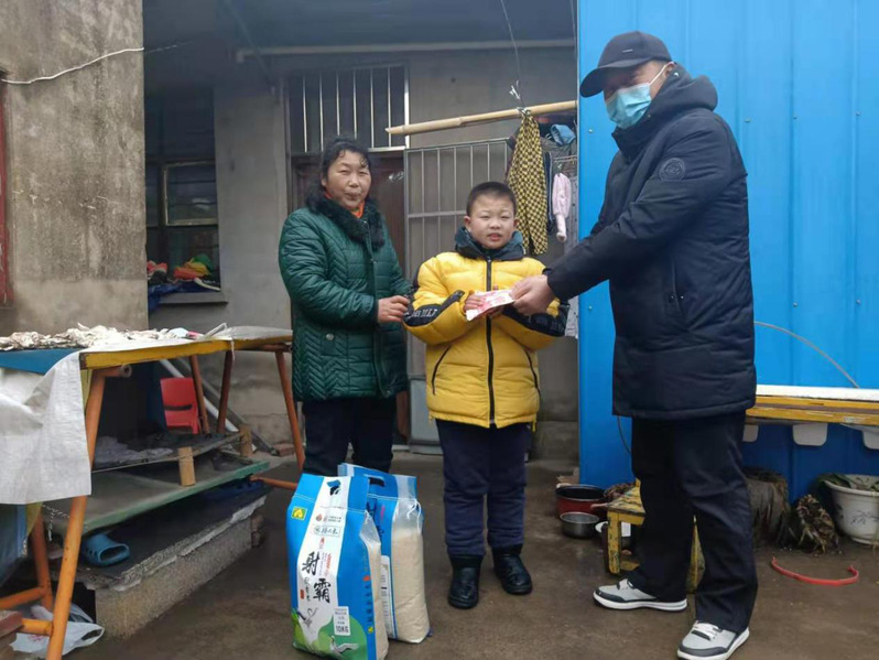 原來,家住城西振興小區做糧食生意的個體老板陸同聯特地在節日來臨之際,請城西居委會主任臧成龍代他向轄區貧困戶獻愛心。據悉,這也是陸同聯第五次給貧困職工送米送錢了。2018年2月12日,陸同聯隱姓埋名委托臧成龍為城西居委會建檔立卡貧困戶嚴建明和身患重病致貧的朱懷兵家各送上了1000元現金和2袋大米;2018年中秋節為這兩個特殊家庭各送去500元現金表愛心;2019年1月10日為這兩個特殊家庭各送去2袋大米和500元現金;2020年1月20日為這兩個特殊家庭各送去2袋大米和500元現金;而今年陸同聯再一次延續了去年的做法,委托臧成龍在節前為貧困職工表上心意。