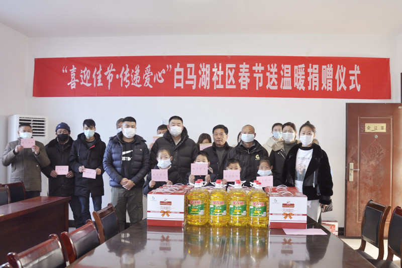 2月8日上午,江蘇皇崗集團(tuán)有限公司副總經(jīng)理胡萬紅帶領(lǐng)有關(guān)人員特意來到白馬湖農(nóng)場裕源居委會,為韓春輝、韓得紅、王建林等十戶困難家庭送上了牛奶、食用油等慰問品以及各1千元的慰問金,并提前祝他們過一個(gè)溫馨祥和的春節(jié)。