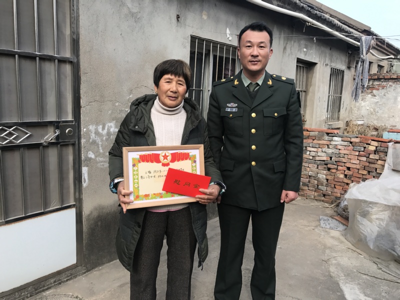 近日,淮海農(nóng)場(chǎng)人武部干事董偉、社區(qū)服務(wù)科副科長(zhǎng)崔慧慧等有關(guān)人員,為在部隊(duì)榮立三等功的現(xiàn)役軍人家庭送去立功喜報(bào)、慰問(wèn)金和農(nóng)場(chǎng)黨委的親切問(wèn)候。