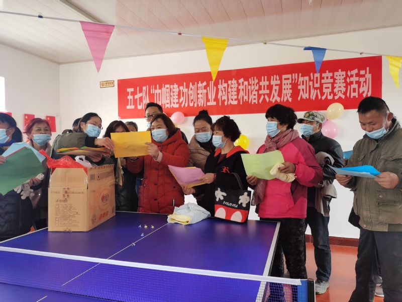 “活動開始!”隨著五七隊婦女主任一聲令下,活動室的大門被打開,喜慶的彩帶、鮮艷的國旗撲入眼簾,而此刻最吸引大家的還是間夾其中的知識競賽題。職工居民紛紛走到賽題前,讀題、思考,互相學(xué)習(xí)交流,競賽現(xiàn)場其樂融融。據(jù)了解,此次知識競賽精心設(shè)計了政治法律、黨史知識、農(nóng)業(yè)生產(chǎn)、婦女健康、道德規(guī)范、企業(yè)文化等60條賽題,讓婦女們在歡快的節(jié)日氛圍中學(xué)習(xí)知識,提升本領(lǐng)。