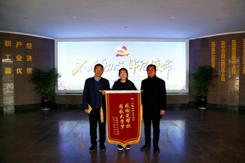 農場公司副總經理、王國亮對劉媛媛感恩黨情表示非常欣慰,接過錦旗和感謝信后,詳細了解劉媛媛同學的學習、實習情況,鼓勵她繼續努力,好好完成學業,早日為家庭、社會做貢獻。同時他表示,農場公司將一如既往地支持和幫助困難群眾,讓黨的溫暖照耀千家萬戶。