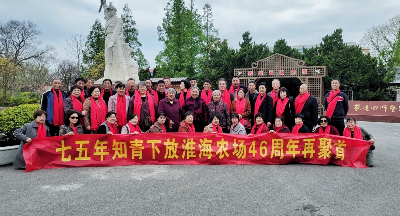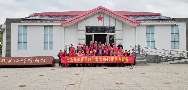 為留下珍貴的記憶,知青們還在農建四師紀念碑、古色古香的國營淮海農場大門、農建四師陳列館的臺階前和曾經居住過的大隊隊部,拍攝了寫有“七五年知青下放淮海農場46周年再聚首”橫幅的集體照,以記住這一次難忘的第二故鄉之旅。