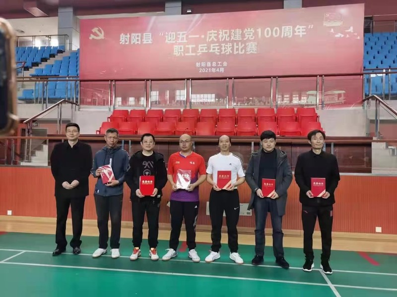 新洋在射陽縣“迎五一 慶祝建黨100周年”職工乒乓球比賽中獲團體、個人第一名